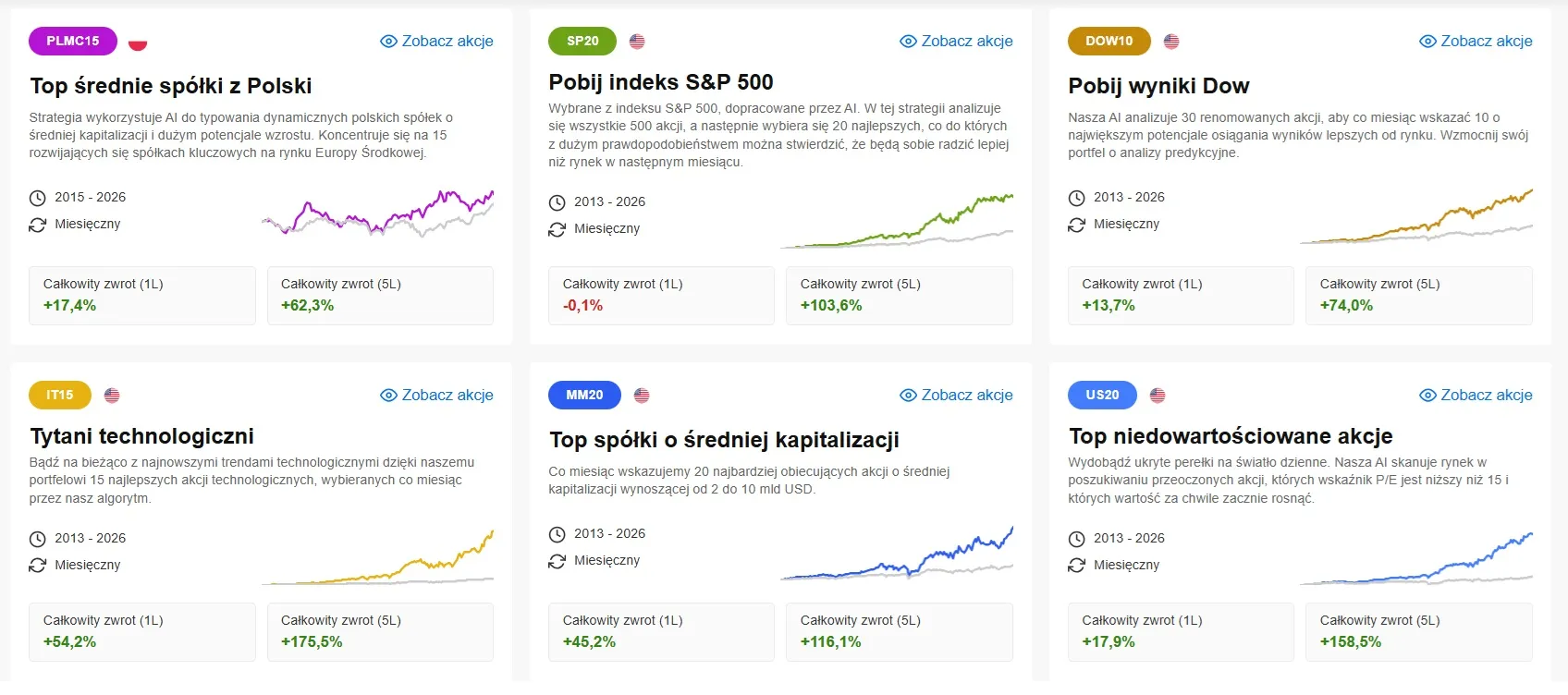 - Strategie ProPicks AI. Gotowe listy spółek stworzonych przez analityków Investing oraz AI z potencjałem na wysokie zyski.