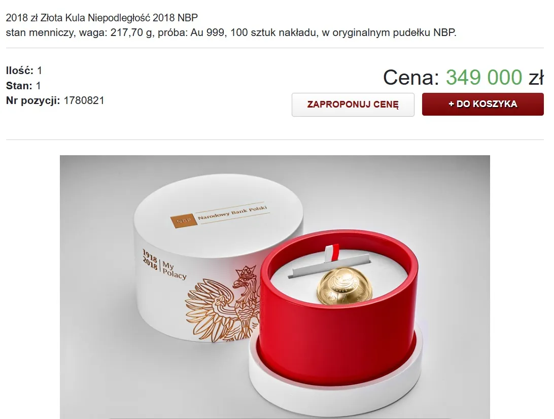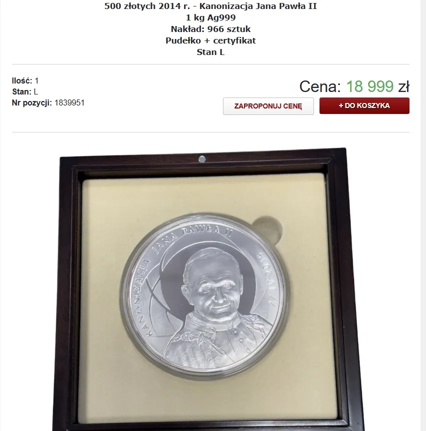 • Aktualna cena monet na Allegro i na aukcjach: około 39 tys. zł za sztukę.