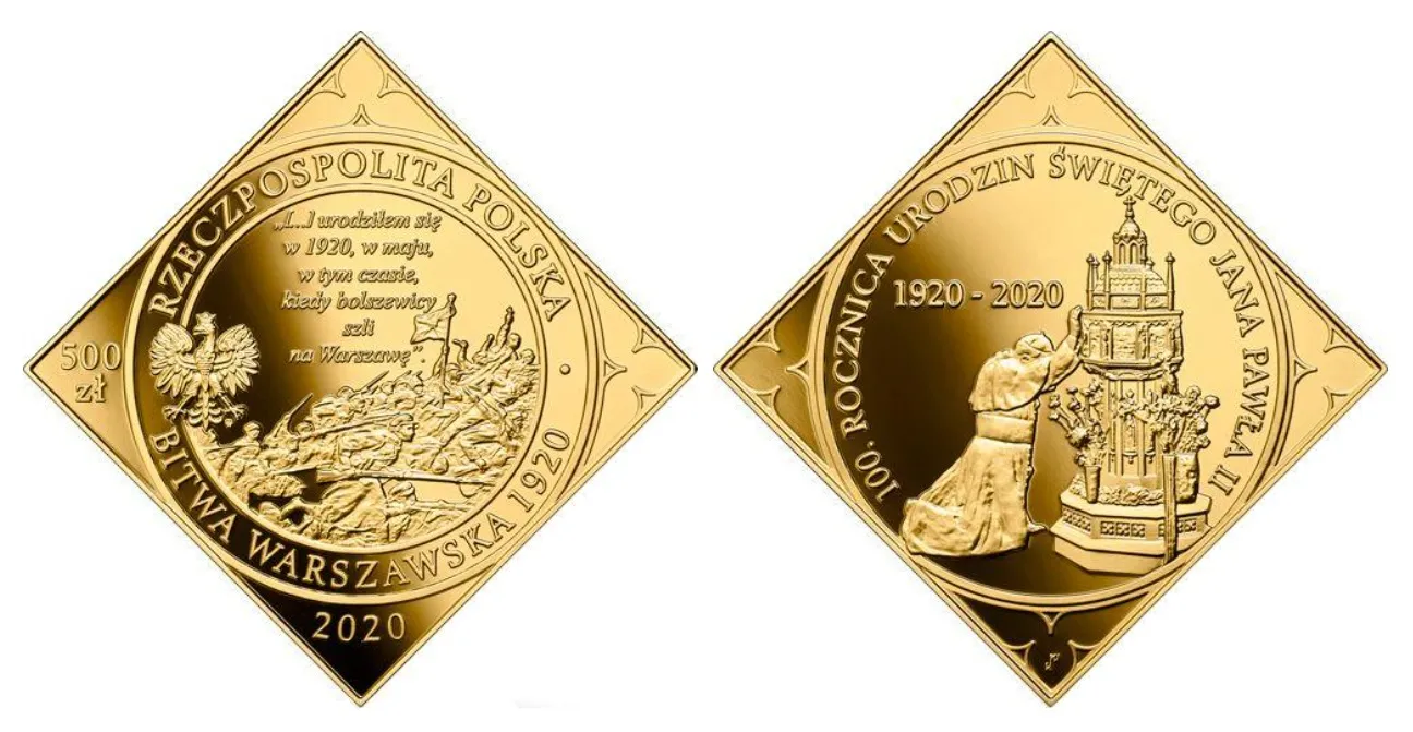 2. Złota moneta 500 złotych 2020: 100. rocznica Urodzin Świętego Jana Pawła II