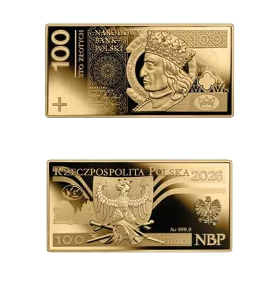Moneta 100 zł z 2026 roku z serii „Polskie banknoty obiegowe”, źródło: www.nbp.pl