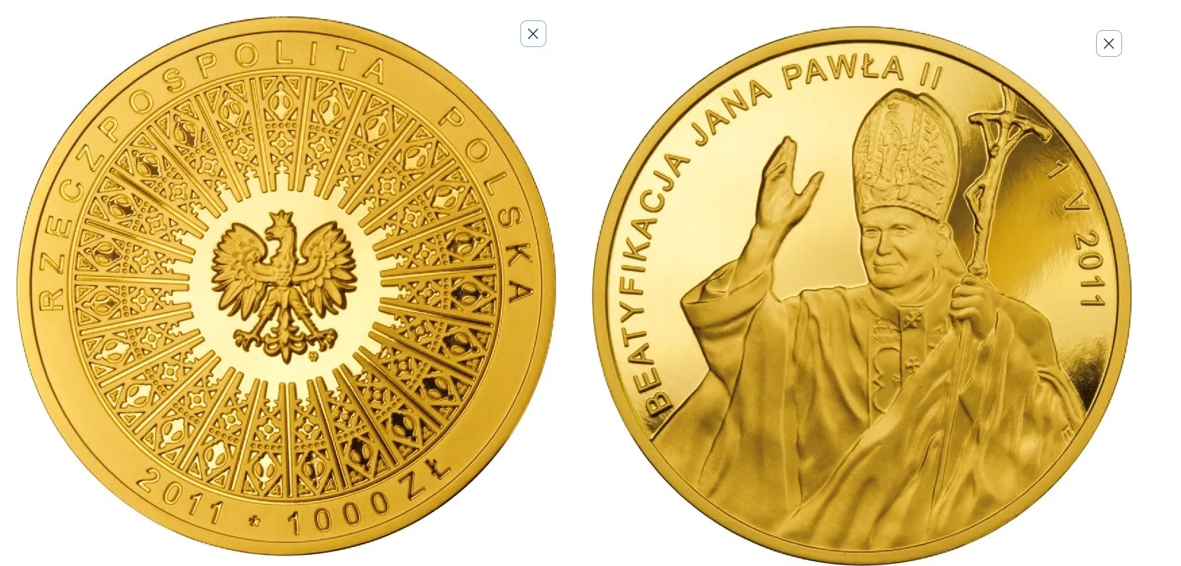 9. Złota moneta 1000 zł  2011 Beatyfikacja Jana Pawła II