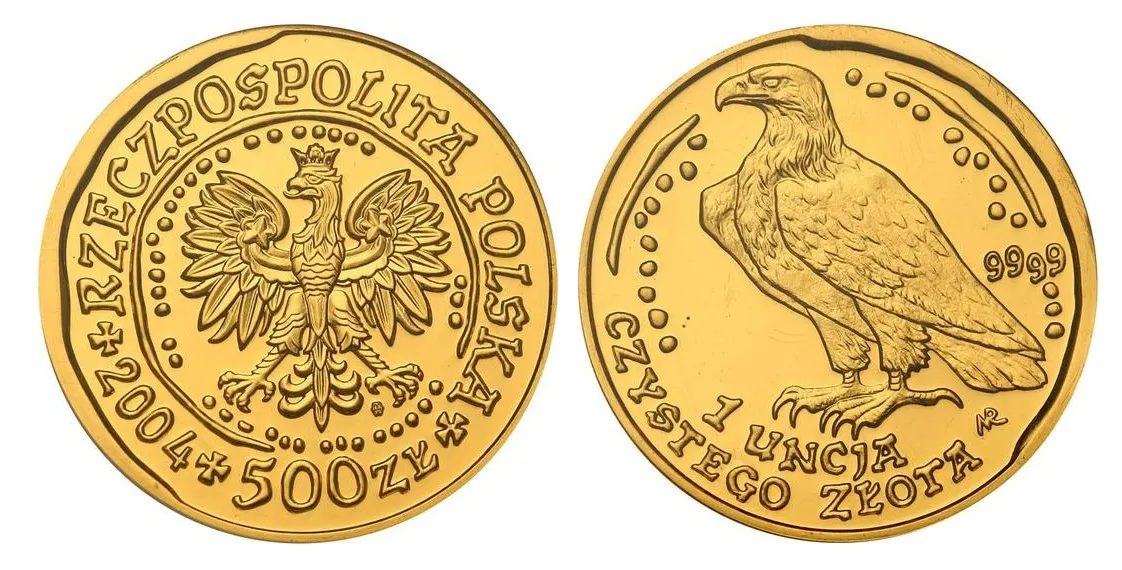 Moneta 500 zł Orzeł Bielik z 2004 roku to absolutny „Święty Graal” współczesnej polskiej numizmatyki. Jest ona najrzadszą i najdroższą monetą kruszcową (bulionową) wyemitowaną przez Narodowy Bank Polski w okresie III RP. W 2004 roku zainteresowanie złotem inwestycyjnym w Polsce było znikome. NBP wyemitował wtedy zaledwie 2500 sztuk tej monety z czystego złota o wadze 1 uncji. W tamtych czasach cena monety powiązana była z ceną kruszcu: przybliżona wartość z 2004 roku to około 1600-1800 zł za jedną monetę.
